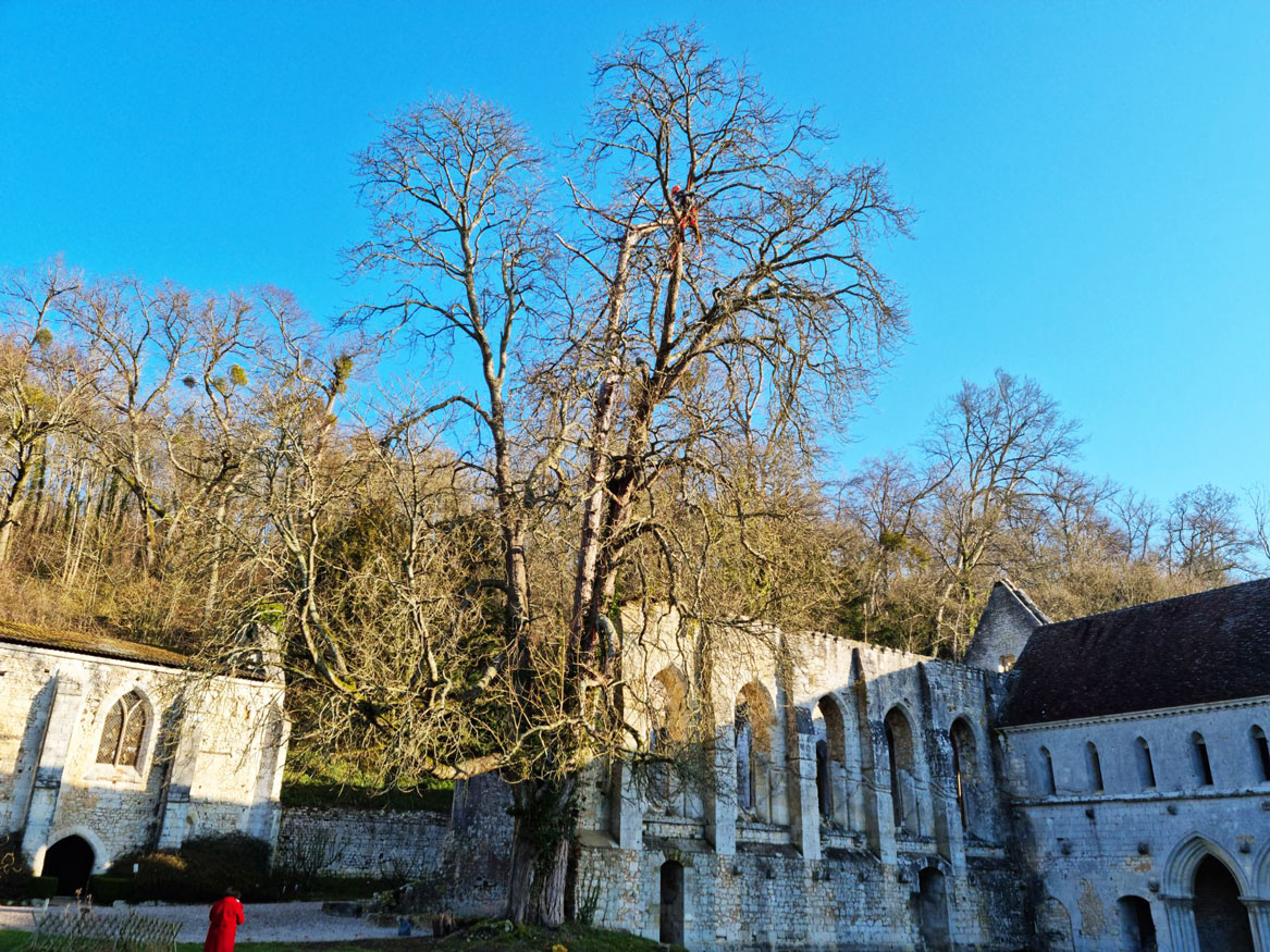 Le principe de la grimpe consiste à installer des cordes dans les branches de vos arbres. C’est un peu plus long mais cela permet de sécuriser l’intervention en ancrant l’opérateur au point le plus haut de l’arbre. Cette technique d’élagage permet de se déplacer où l’on veut dans les arbres. Un nacelliste sera forcément bloqué par des branches à un moment donné de son chantier. L’arboriste-grimpeur permet une plus grande latitude d’action et ce, tout en respectant les arbres.